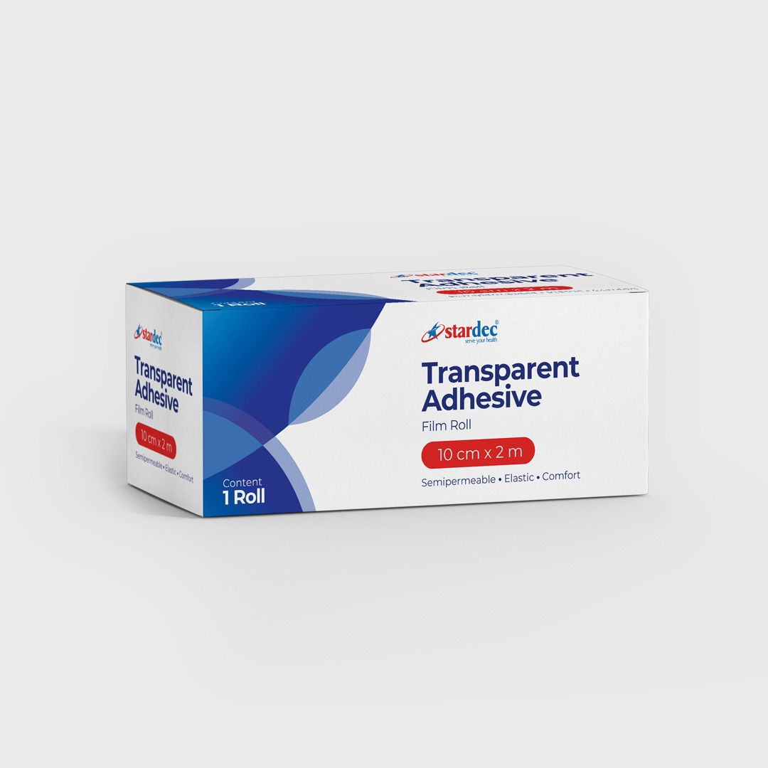 Stardec Transparent Adhesive Film Roll is a transparent fixation dressing designed for large wounds, offering waterproof protection.